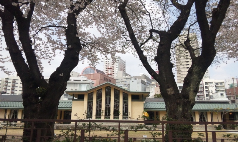 昨年見て大感激した池袋・明日館の桜。普通の道沿いにもかかわらず、多くの方がお花見に訪れていました。