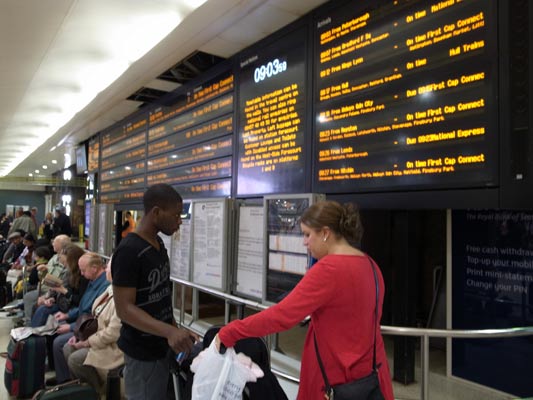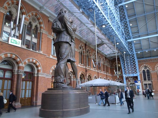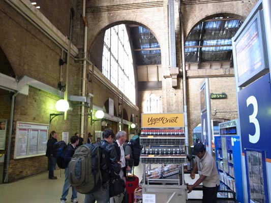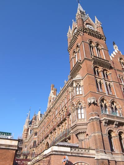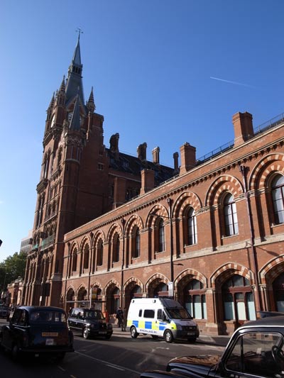 手前がキングス・クロス駅、奥がセント・パンクラス駅。二つの巨大な駅が隣接していて、さらに近所にはユーストン駅という、これまた大きな駅が並ぶという駅密集地帯です。