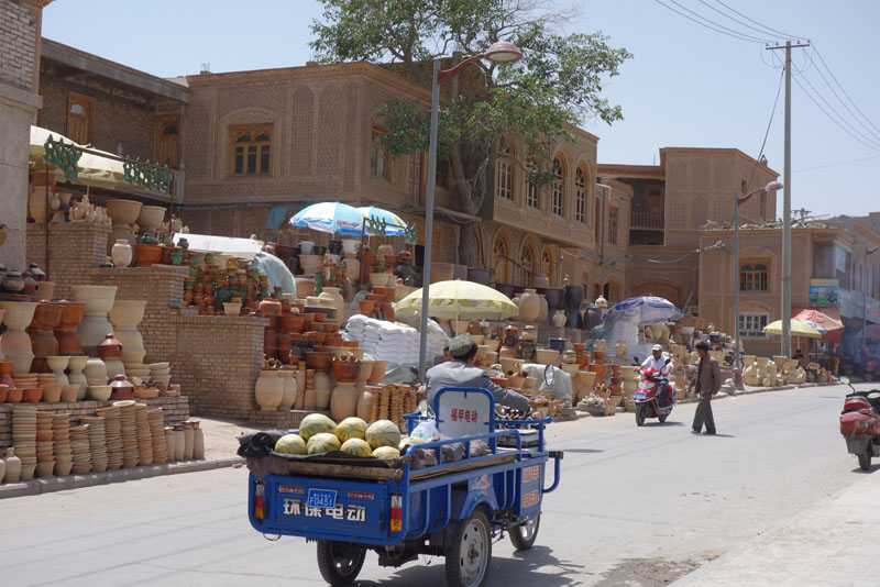 今回撮った写真にはあまり入っていないのですが、カシュガルも表通りになると中国の他の都市と変わらない近代的な風景が広がっています。