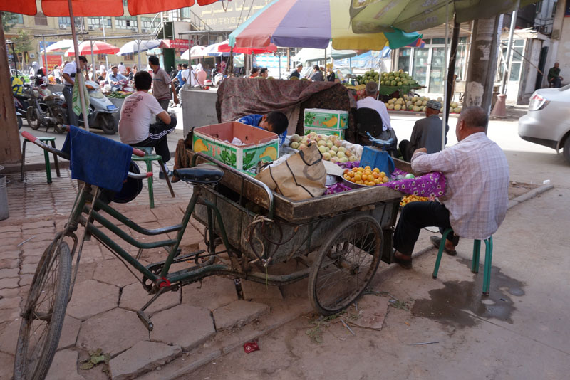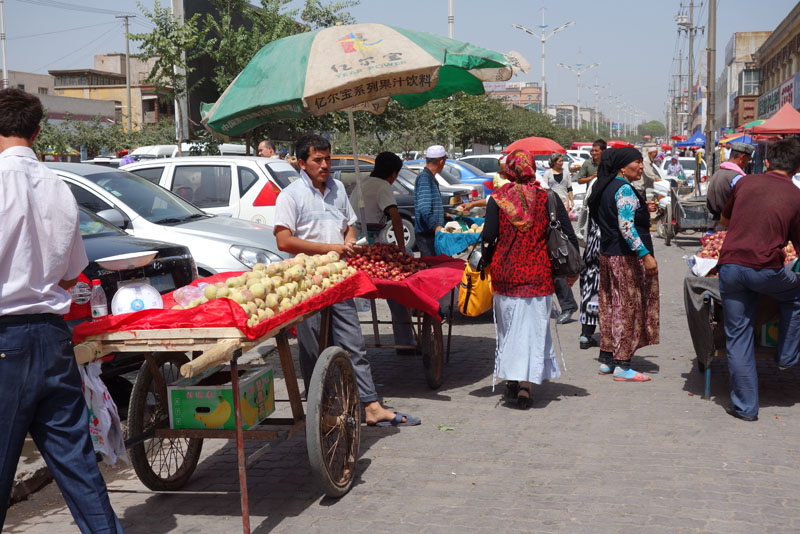 大体このあたりでは日曜とか決まった曜日に開催されることが多いのですが、カシュガルのような大きな町では常設の商店街になっています。