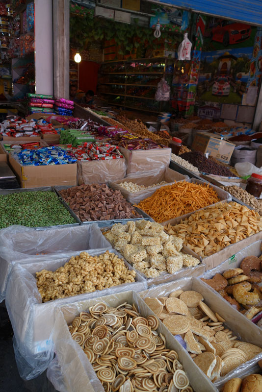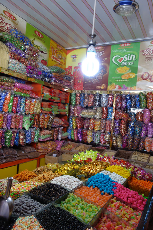 こちらはパッケージングされたお菓子を売っているお店。日本にある200円の袋入り飴、みたいなのはあまりなく、どっさりまとめ買いが基本…なんだそうです。豪快です。