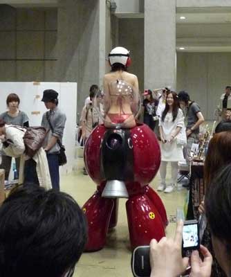 で、極めつけはこちら。タチコマっぽい実にしっかりしたボディの乗り物におねーさんがまたがっています。