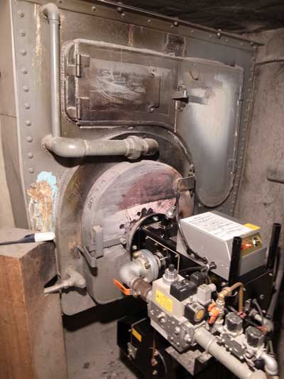 昔の窯に、ガスの温熱装置が取り付けられています。