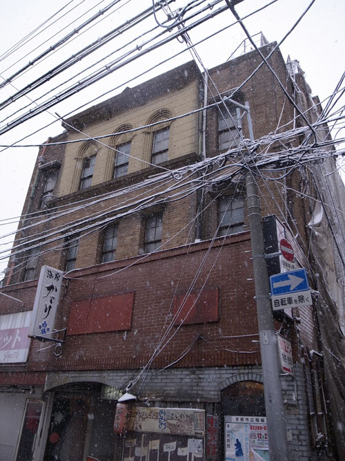 日本家屋の並ぶ街中に突如現れたレトロなビル。