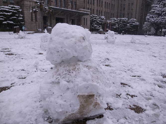 雪だるま。いいですね、こう、どこにでも雪だるまを作れる感性や風土が好きです。