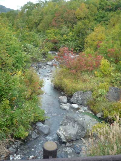 同じく車中より。標高の高い場所だと紅葉もちらほら。