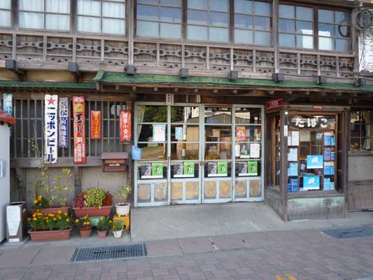 ホーロー看板と窓の下の装飾が素晴らしい。