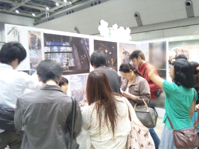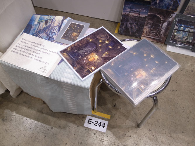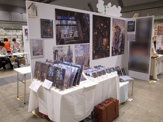 基本的な配置は前回までと殆ど変わりません。何のひねりも無い、絵を目立たせるだけに特化したシンプルなブースです。もうちょっとこだわっても良い気はするんですが・・・展示の良いアイデアを持ったブレーンを切に募集したい気分です。