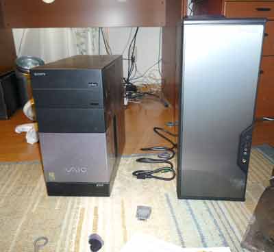 左のVaioが普通のタワー型サイズなのですが、それと比べるとかなり大きい。
