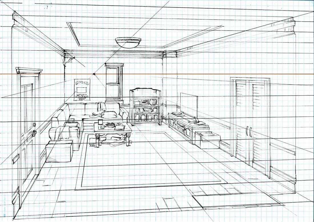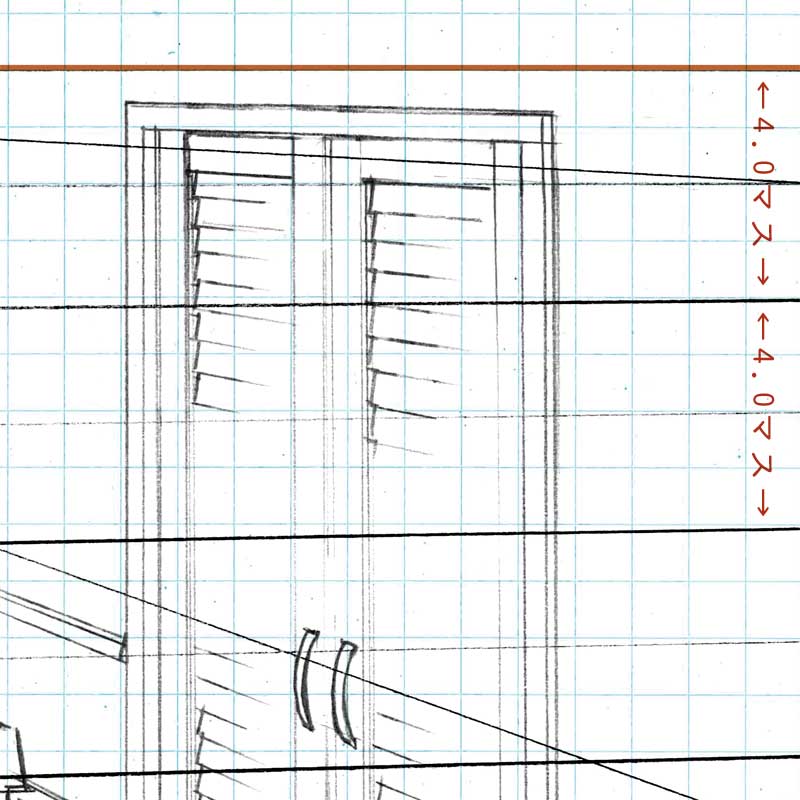結構昔の記事で書きました、パースを取る際の方眼紙の使い方について、豆太さんからご質問をいただきましたので、もうすこし詳細に説明してみようと思います。