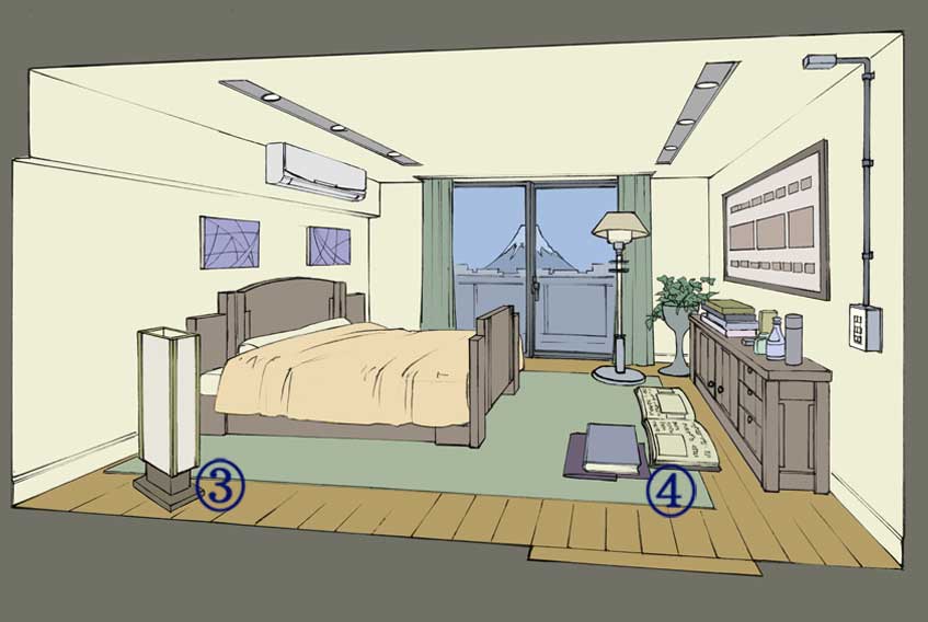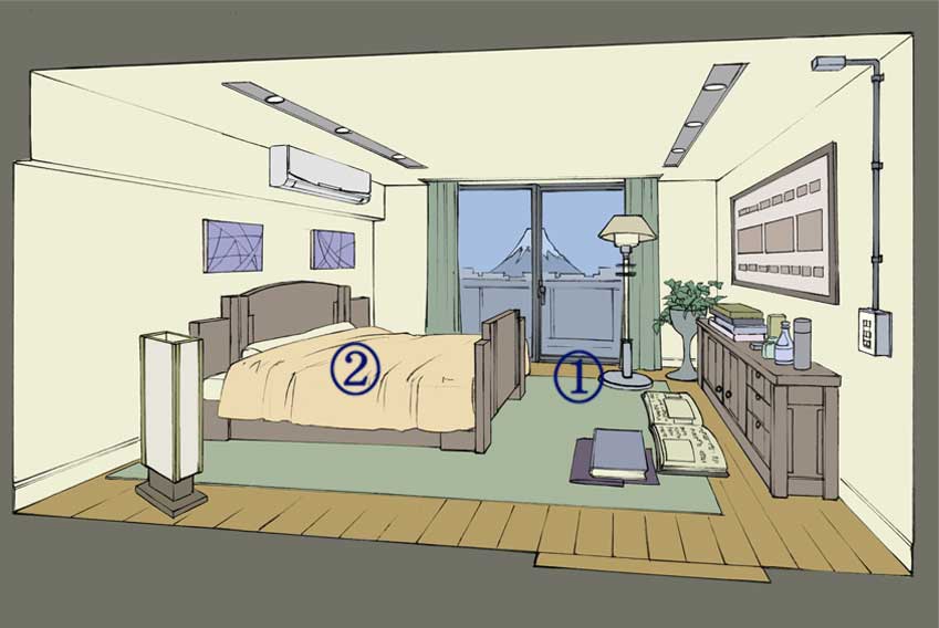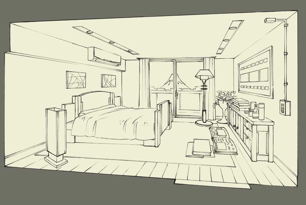 (このアイテムに対応したパースを、部屋の消失点と同間隔でずらしてとればOK)
