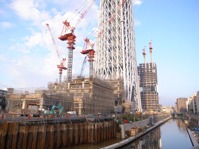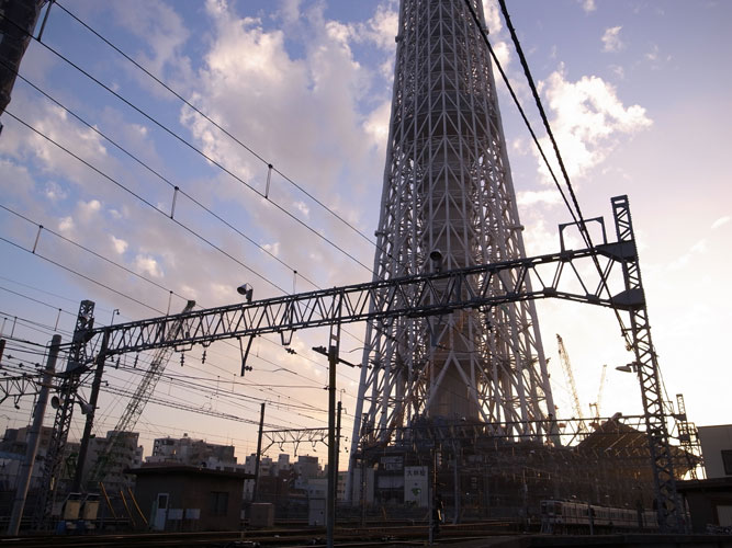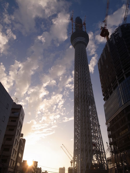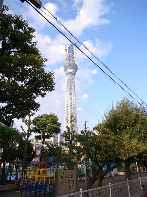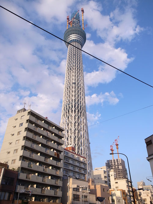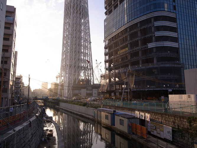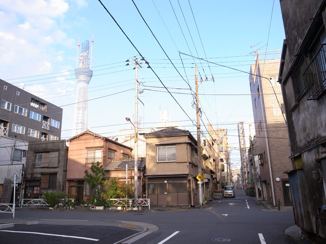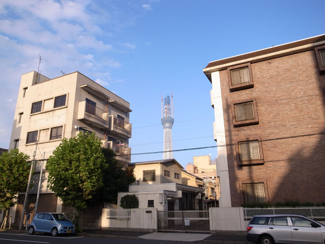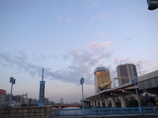 東京は浅草界隈、隅田川のあたりまでやってくると、少し見通しの聴く場所ならどこからでもスカイツリーが存在感を顕わにします。