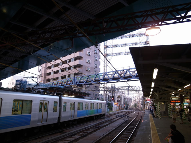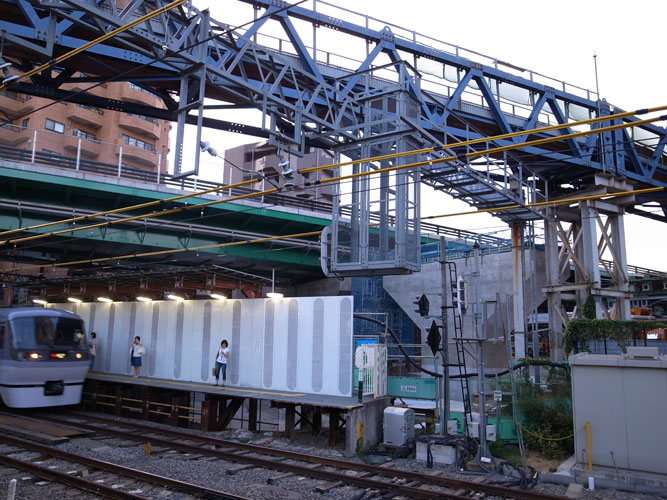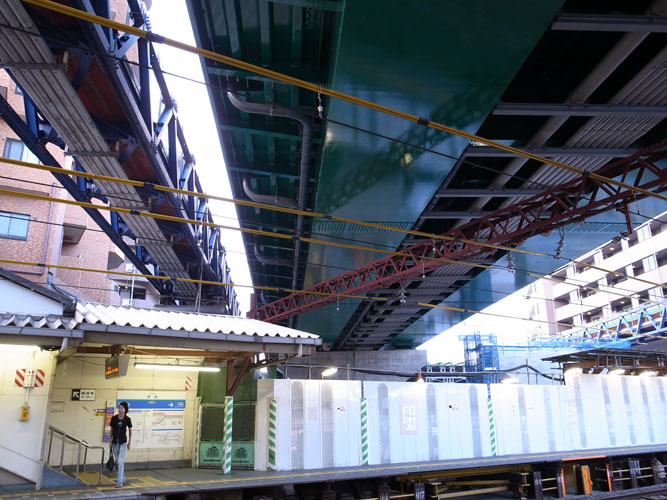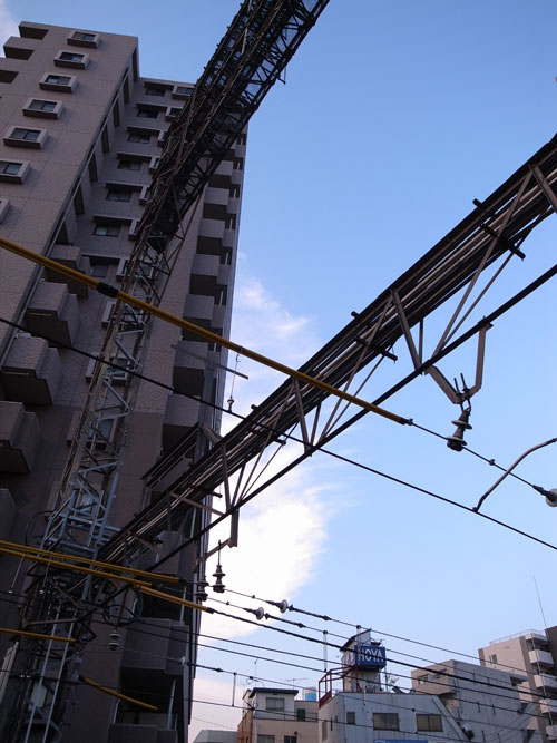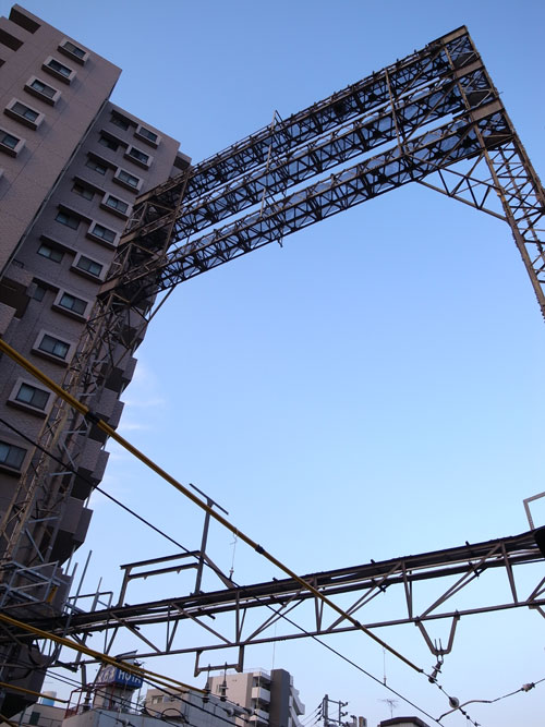 思うに、都会で高い塔をはりめぐらせる場所がなかったので、線路の上に、それも電車に干渉しないような高~い所に造ったんじゃないかな・・・などと推測しているんですが、実際はどうなんでしょう?