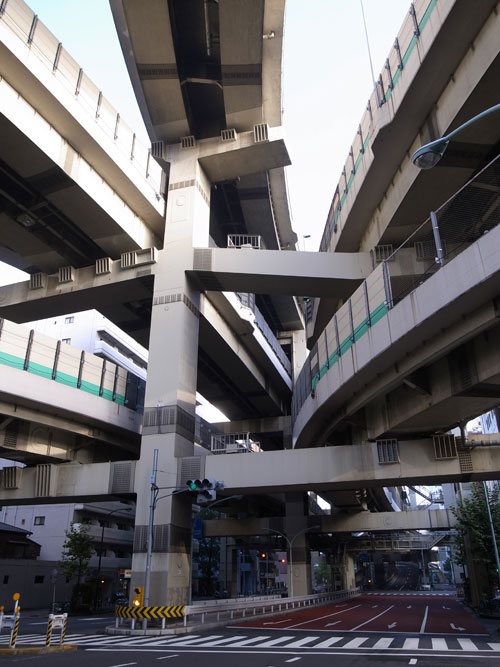 首都高の足元。素晴らしく複雑に交差していて、ダイナミックそのものと言った趣です。