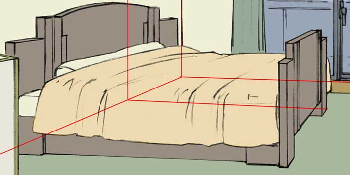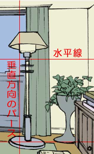 (このアイテムに対応したパースを、部屋の消失点と同間隔でずらしてとればOK)